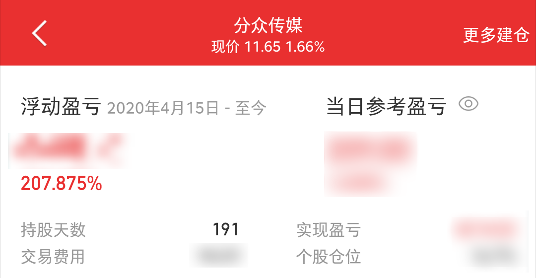 截下图时我已卖出部分,所以收益率有两倍多,实际上是一倍多点。本文不构成任何投资建议,关灯吃面别找我。