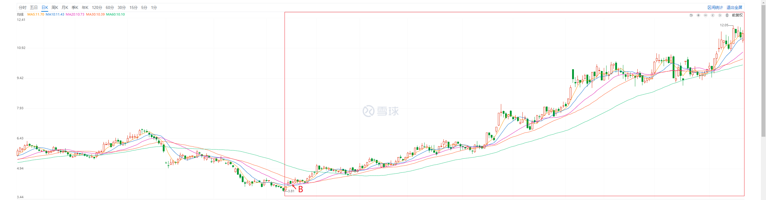 说回分众,从图上可以看出,分众从底部到现在的涨幅也不是一周两周就涨完的,是一步一个脚印慢慢涨到现在。我记得在8月份的时候分众跌破了30日均线,当时有点慌了,还去凯哥那里充值了信仰。